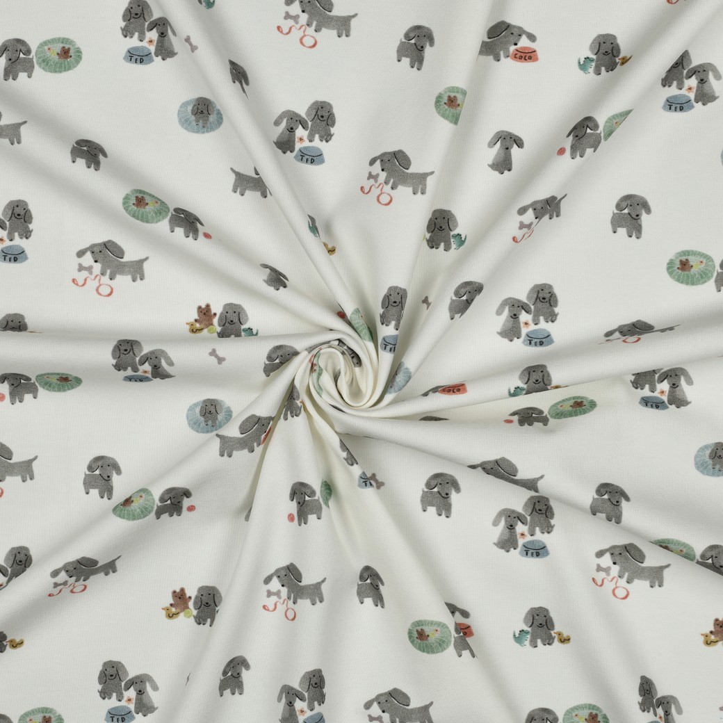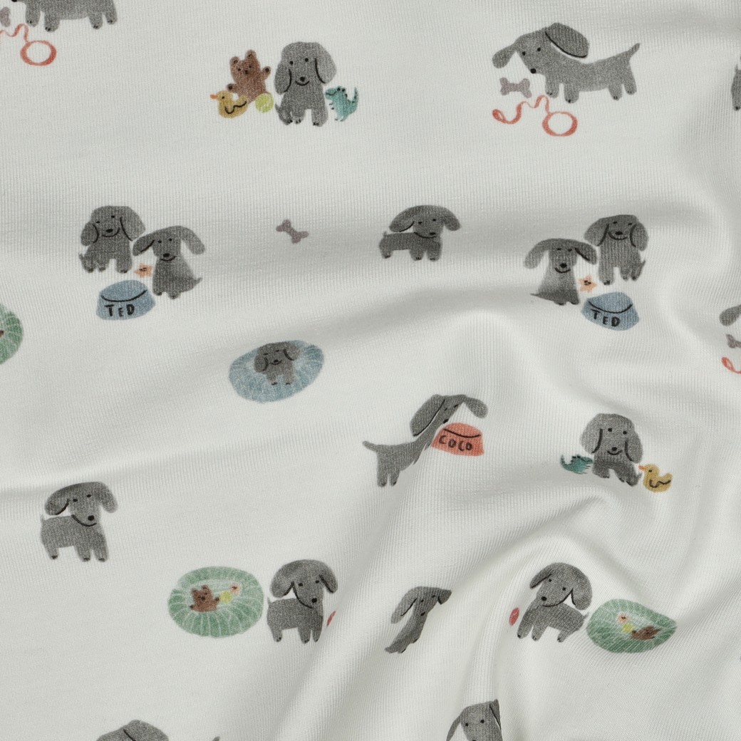 Jersey Gots digtal - kleine Hunde auf gebrochenem weiss